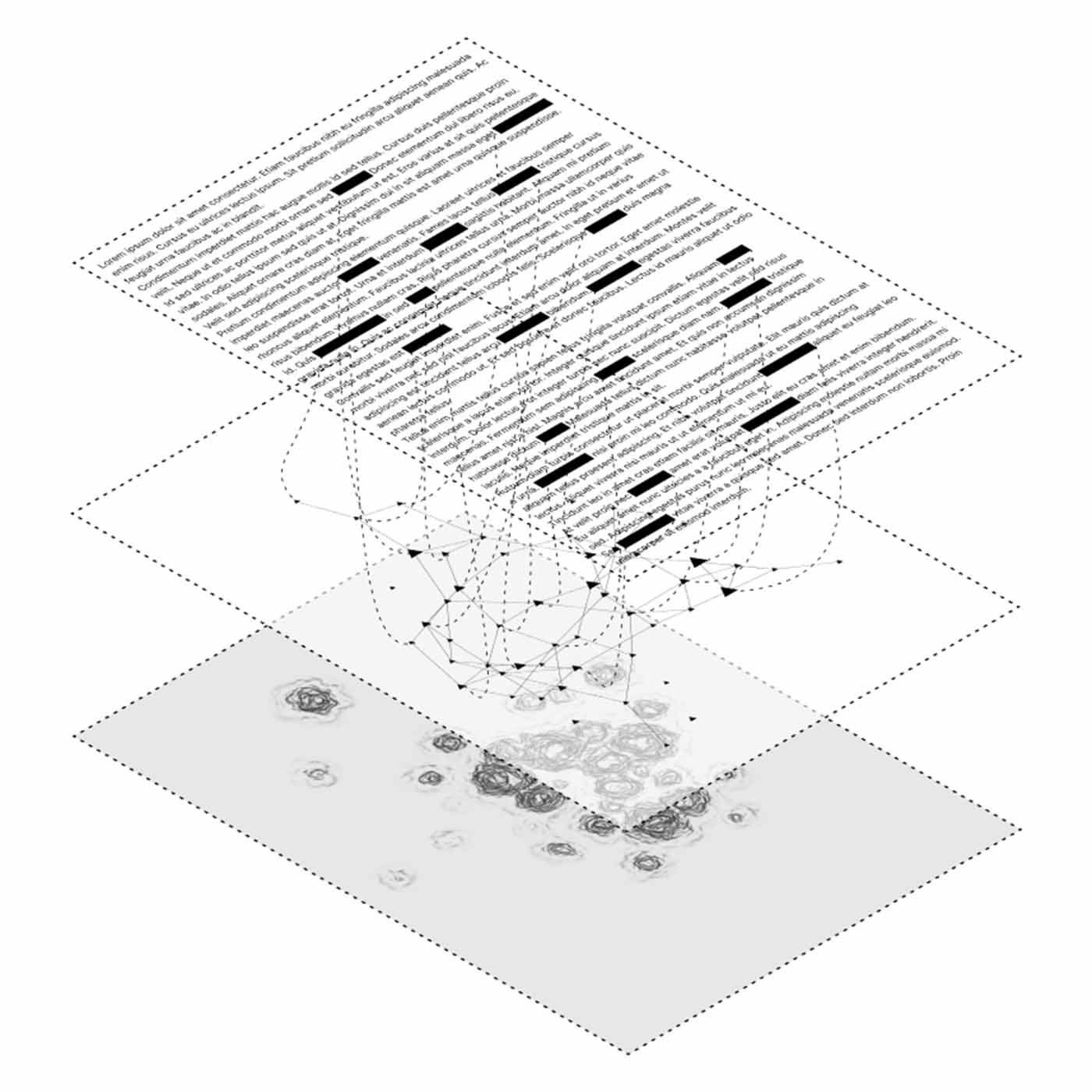Once the network had been obtained, we imagined what it would look like if we were to read it as a landscape. In this metaphor, each node (word) corresponds to a mountain whose height and dimensions are proportional to the frequency of that term in the discourse.