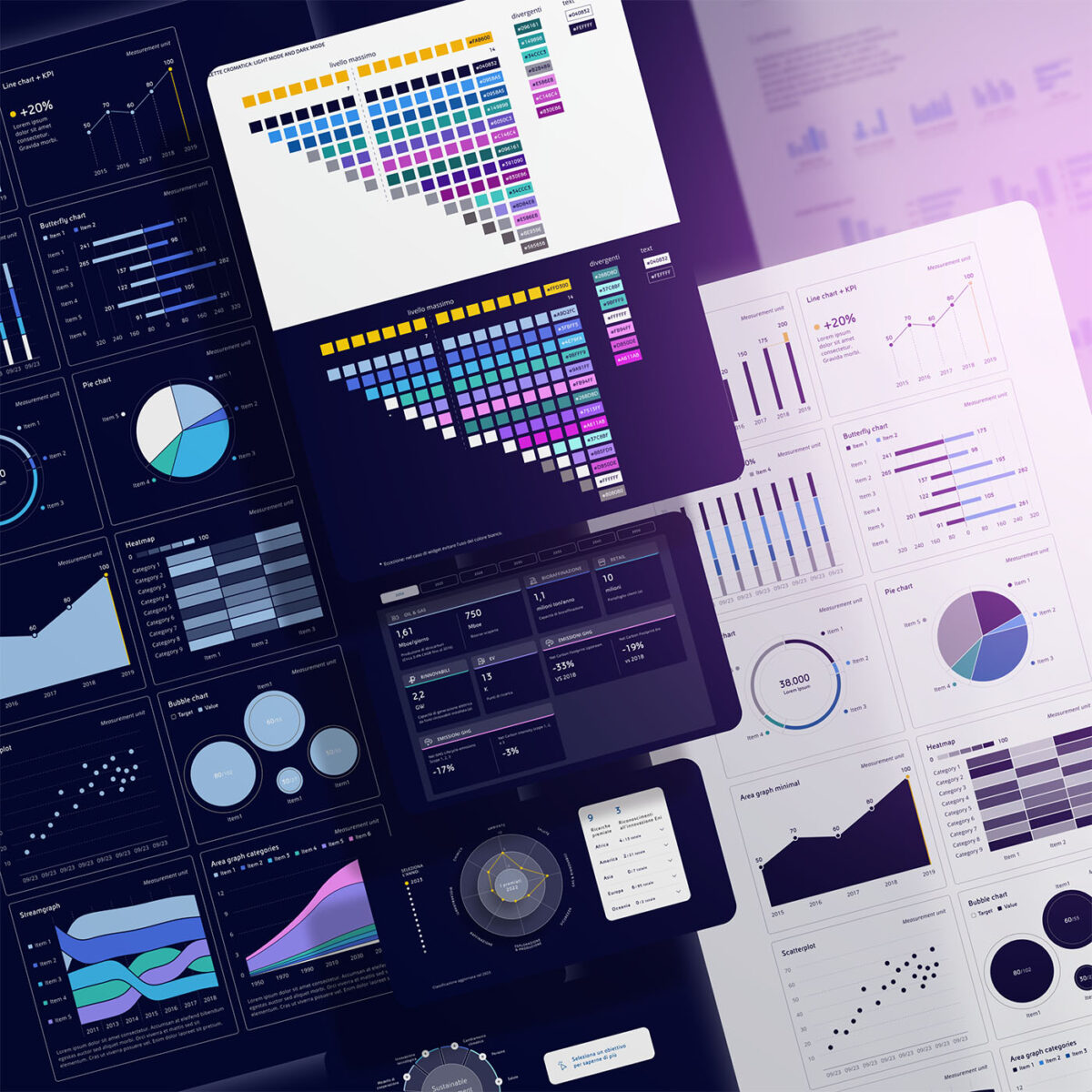 The system was then used as a starting point for the design of new infographic components. Different textual, dynamic and interactive elements are used to create complete and immersive visualizations that clearly represent data and make content easily accessible.